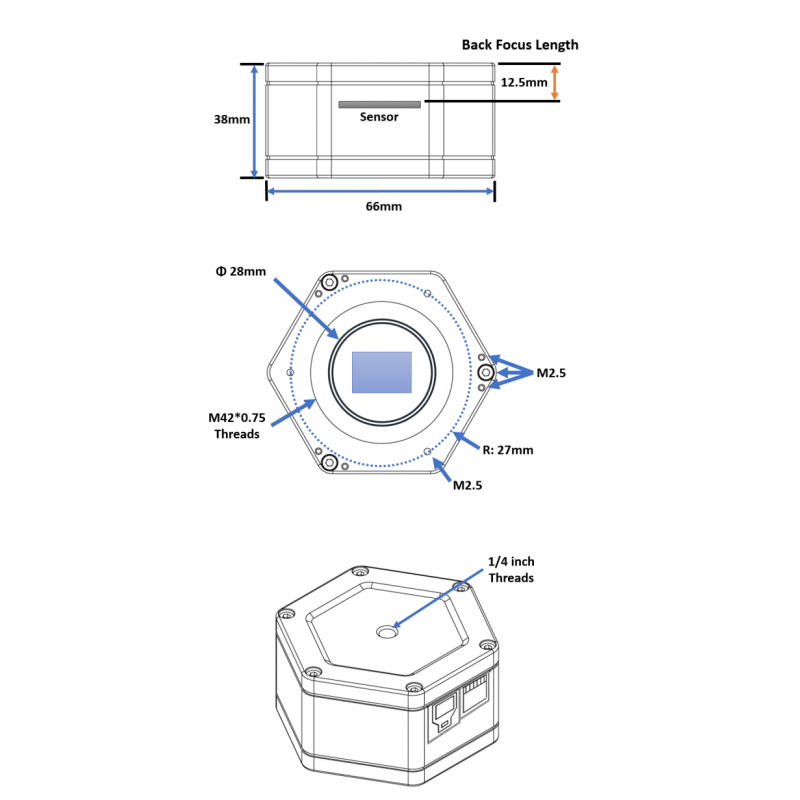 - Back Focal Length: 12.5mm