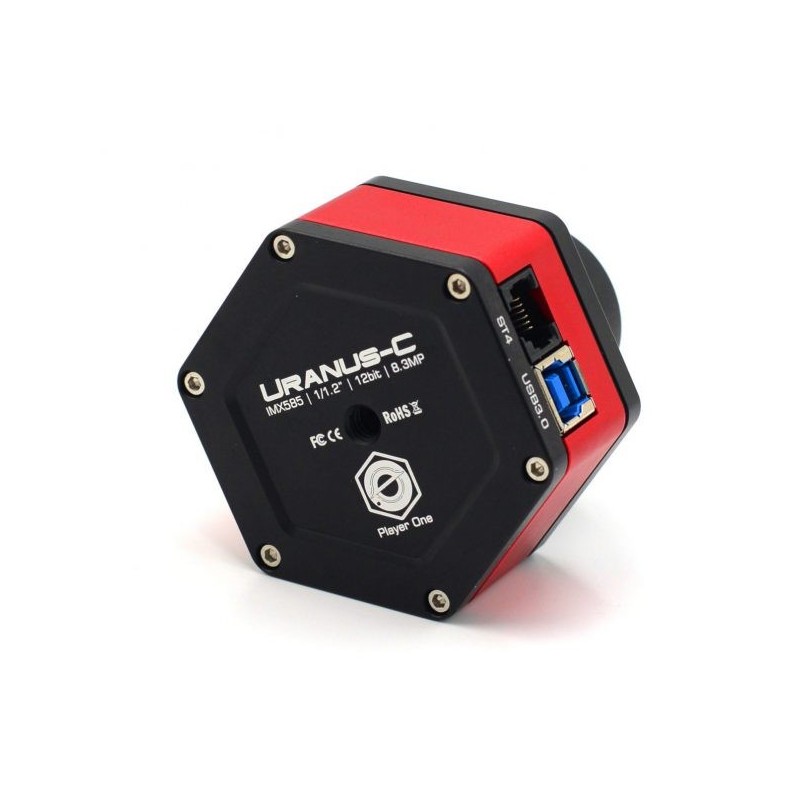 Uranus-C is (IMX585) camera developed by Player One Astronomy, which adopts the newest Sony IMX585 1/1.2” format color sensor. The 2.9um pixel size accommodates a well depth of 38.8Ke with a total of 8.3MP (the resolution is 3856*2180), and the diagonal is 12.85mm.
