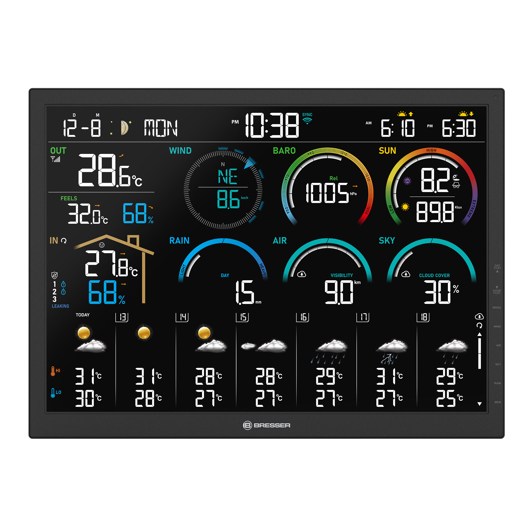 Ο μετεωρολογικός σταθμός BRESSER 4CAST 18,5″ Wi-Fi με αισθητήρα 8 σε 1 σας προσφέρει την απόλυτη επισκόπηση του καιρού με μια ματιά. Η τεράστια οθόνη του συγκεντρώνει μια πληθώρα τοπικών μετρήσεων και διαδικτυακών κλιματικών δεδομένων. Ορισμένα από τα πολλά δεδομένα είναι μια λεπτομερής πρόγνωση 14 ημερών και υπολογισμός WBGT (Wet Bulb Global Temperature) με επίπεδο θερμικής καταπόνησης. Και με το ενσωματωμένο Wi-Fi, οι πληροφορίες καιρού είναι πάντα σε απόσταση μόλις ενός αγγίγματος – όπου κι αν βρίσκεστε.