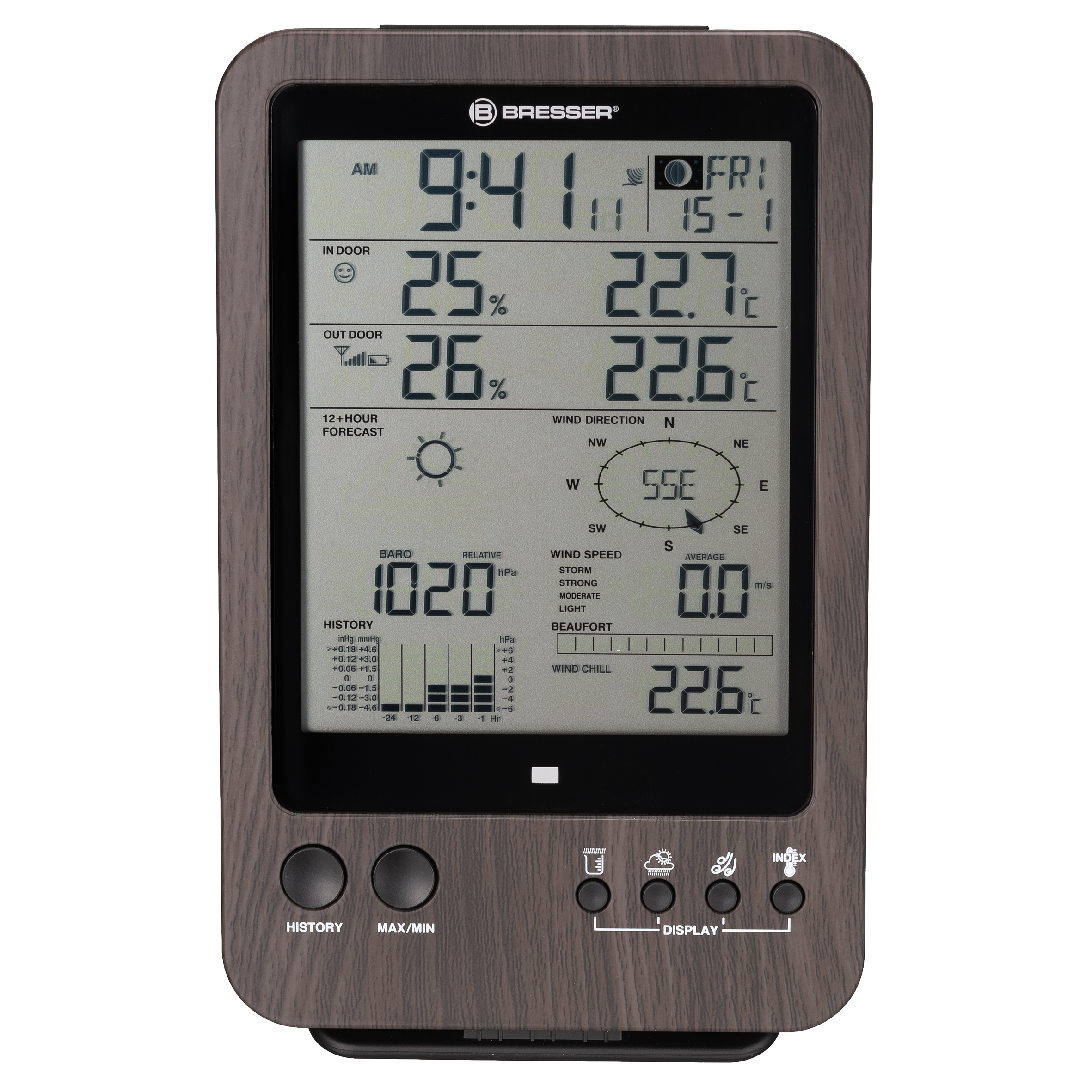 Με τον μετεωρολογικό σταθμό BRESSER WTW 5 σε 1 για οικιακή χρήση θα είστε πάντα προετοιμασμένοι – είτε πρόκειται για καυτή ηλιοφάνεια, καταρρακτώδη βροχή είτε για θυελλώδεις ανέμους. Ο εξωτερικός αισθητήρας ακριβείας 5 σε 1 διατηρεί όλα τα βασικά δεδομένα χαρακτηριστικά, έτσι ώστε να μπορείτε να προγραμματίζετε την ημέρα σας με σιγουριά.