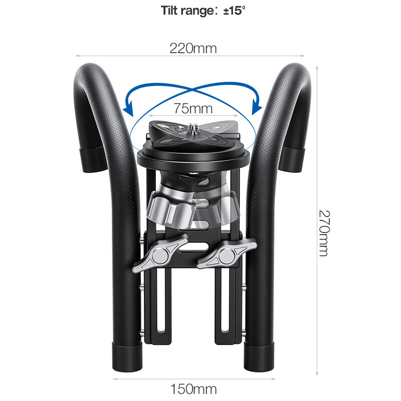 Ο ενσωματωμένος μηχανισμός κλίσης επιτρέπει κλίση +/- 15° για οριζοντίωση, που σημαίνει ότι το οπτικό όργανο που τοποθετείται μπορεί να ευθυγραμμιστεί οριζόντια σε ένα κεκλιμένο παράθυρο. Αντί για σφαιρική κεφαλή, μπορεί επίσης να χρησιμοποιηθεί και κεφαλή κλίσης. Η πλάκα στήριξης είναι ρυθμιζόμενη σε ύψος, επιτρέποντας την ακόμα καλύτερη ρύθμιση της βάσης. Όλοι οι σημαντικοί μοχλοί είναι μεγάλοι και εργονομικά σχεδιασμένοι για γρήγορο και ασφαλές σφίξιμο. Διαθέτει φωτογραφικό σπείρωμα 3/8’’ για τοποθέτηση π.χ. σφαιρικής κεφαλής.