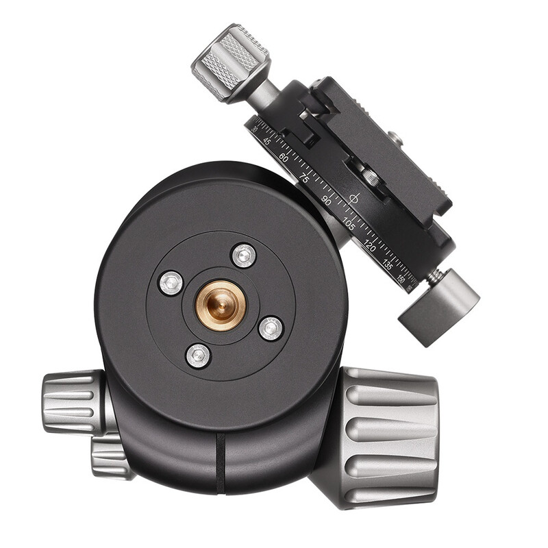 Η σφαιρική κεφαλή είναι εξοπλισμένη με στάνταρ σφιγκτήρα Arca-Swiss και μια πλάκα γρήγορης απελευθέρωσης.
