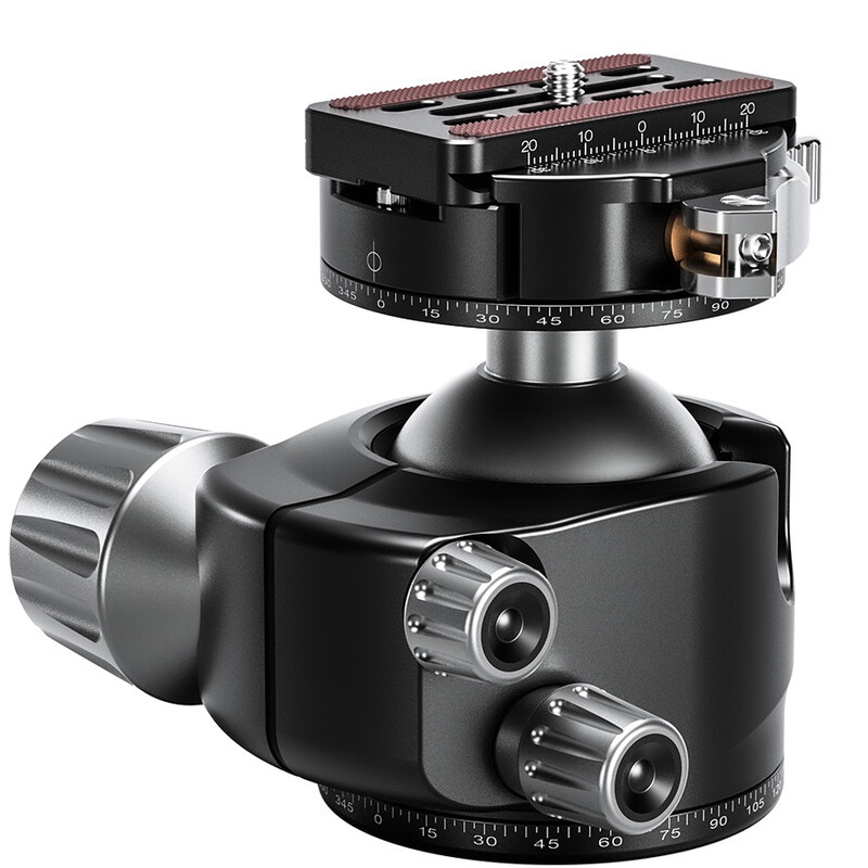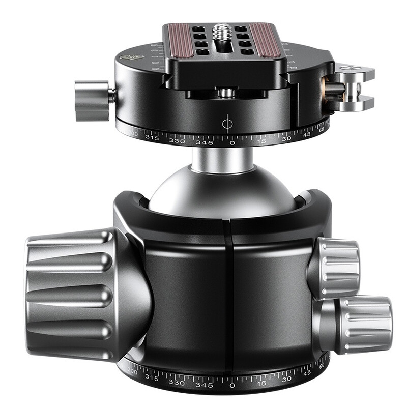 Η σφαιρική κεφαλή είναι εξοπλισμένη με στάνταρ σφιγκτήρα Arca-Swiss και μια πλάκα γρήγορης απελευθέρωσης.